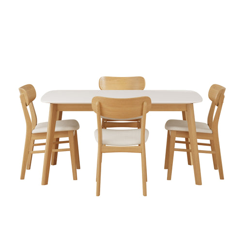 5-Piece Dining Set: Includes one solid wood frame table and four upholstered chairs for comfortable, spacious dining Mid-Century Modern Design: Cl...