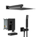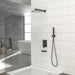 Wall Mounted Square Shower System With Waterfall Tub Spout And Rough In Valve - Matte Black