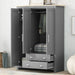 3 Door Storage Wardrobe With Cabinets And 2 Hanging Rods - Gray