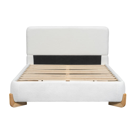 Elegant Boucle Upholstered Bed With Wood Grain Textured Solid Wood Base Frame