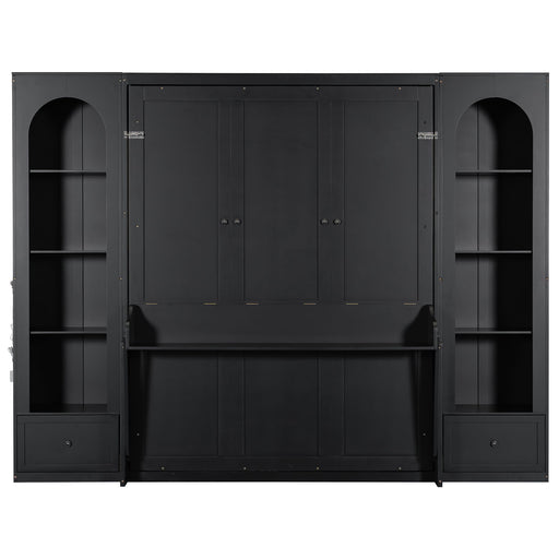 French Style Murphy Platform Bed With Shelf, Side Cabinets, Drawers And LED