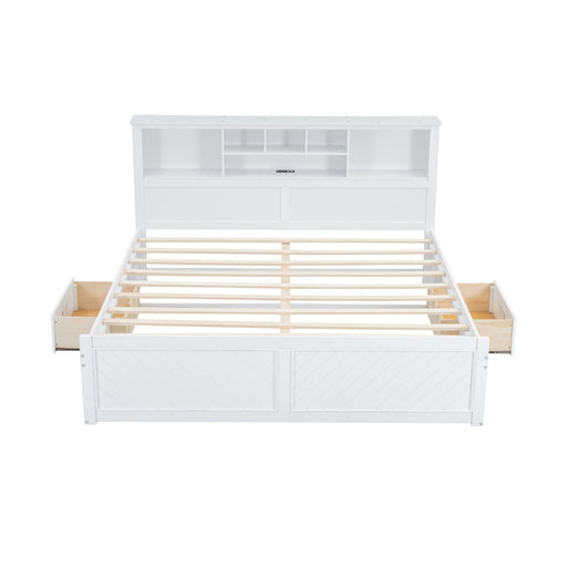 Platform Bed With Multi Storage Headboard, USB And Drawers