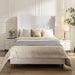 Premium Upholstery: The bed is covered in beautifully textured woven upholstery in cream white, combining aesthetic appeal with a luxurious feel.