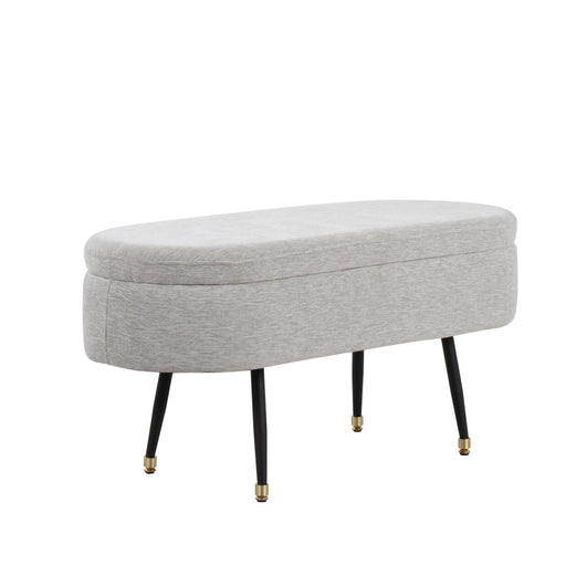Stylish Design: The Harvey Storage Bench by LumiSource combines modern and mid-century elements with its fabric upholstery, black metal taper...