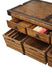 Ample Storage: Equipped with three slatted wooden baskets, three glide bottom metal drawers, and an open compartment with a fixed slatted shelf for organized storage of utensils, ingredients, cookbooks, or decorative items.