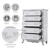 Click to expand Tap to zoom Latisha - Chest - White by Acme Save 0% Save % Original price $1,054.11 - Original price $1,054.11 Original price $1,054.11 $1,054.11 - $1,054.11 Current price $1,054.11 | / Refined Style: This chest features a fresh white finish, offering a refined and timeless look that complements any room decor. Durable Construction: Made from hardwood, MDF, and composite wood, it ensures both sturdiness and visual appeal for long-lasting use. Ample Storage: Includes two top drawers (28x12x3 inches) and three additional drawers (22x12x4 inches), providing generous storage for various items. Versatile Shelf: A versatile shelf (20x18x10 inches) adds extra storage space, perfect for organizing essentials efficiently. Smooth Finish: Finished with a smooth paper veneer, it offers a polished touch while enhancing the chest's durable structure. Latisha - Chest - White19.0"W x 40.0"D x 56.0"H - 218.0 lb Quantity Add to cart This item is a recurring or deferred purchase. By continuing, I agree to the cancellation policy and authorize you to charge my payment method at the prices, frequency and dates listed on this page until my order is fulfilled or I cancel, if permitted.