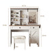 Rustic Farmhouse Makeup Vanity Desk With Sliding Mirror, LED Lights, And Charging Socket - White42.13"W x 15.75"D x 53.94"H - 106.92 lb