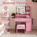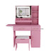 Vanity Desk With LED Mirror Lights And Power Outlet Charging Station, 3 Drawers, 7 Shelves, Storage Stool - Pink