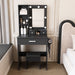 Vanity Table With Mirror, Adjustable LED Lights, Power Outlet, Hairdryer Holder & Stool