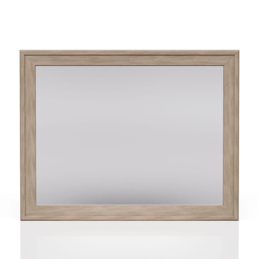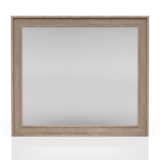 Beveled Glass: Enhances the elegance and depth of the mirror. Sand Colored Finish: Adds a warm and inviting touch to any room. Rubberwood Frame: P...