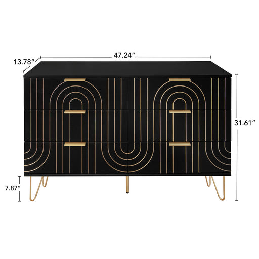 Stylish Design: Features a sleek black wood finish for a sophisticated look. Ample Storage: Includes six spacious drawers for organized storage. E...