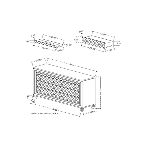 Storage Capacity: The Jehoram Gray Finish Dresser features 8 spacious storage drawers. The top two drawers measure 27"L x 12"W x 3"H, while the...
