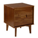 Mid-Century Modern 2 Drawer Solid Wood Nighstand With Cutout Handles - Caramel