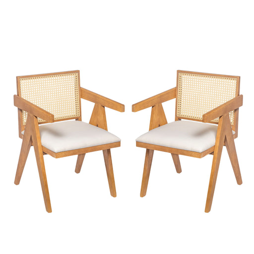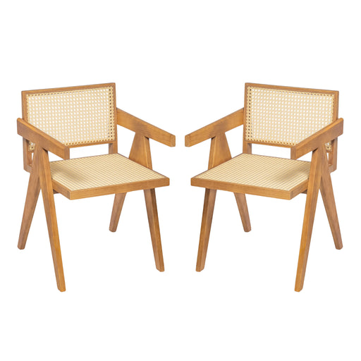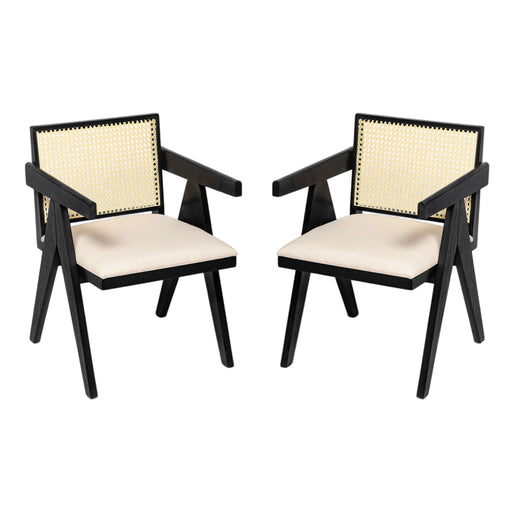 Modern Design: Enhance your dining space with the chairs' unique rattan backrest and armrest. High-Quality Materials: Made from durable solid wood...