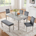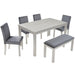 6 Pieces Wooden Dining Table Set, Wooden Dining Table With 4 Upholstered Chairs And Bench For 6 People - Silver Gray58.5"W x 34.5"D x 30.0"H - 130.9 lb