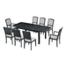 Distinctive Chair Design: Includes eight chairs with diamond pattern backs and rivet details, adding elegance and distinction, with six armless and two armrest chairs.