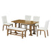 Comfortable Seating: Includes four upholstered chairs and a generously sized bench with a stretcher for extra stability. Designed for optimal comfort and back support, ideal for family meals or entertaining guests.