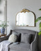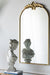 Regal Charm: Decorative mirror with a refined gold finish and a large arched frame adorned at the head.