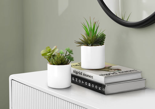 7" Tall, Artificial Plant, Succulent, Indoor, Faux, Fake, Table, Greenery, Potted, Decorative (Set of 2) - Green / White