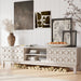 • Unique Media Console Design: Three-dimensional surface with open shelves and drawers enhances visual appeal and provides functional storage for living rooms and offices.