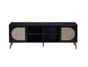 Stylish Design: The Colson Black Finish TV Stand features a sleek design with a combination of wood and metal, highlighted by a rattan insert, adding a contemporary touch to any living room.
