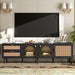Rattan TV Stand With 3 Cabinets & 2 Drawers, Rattan-Inspired Media Console Table For Tvs Up To 80'', LED Light Entertainment Center, TV Cabinet For Living Room - Black70.8"W x 15.7"D x 19.6"H - 74.96 lb