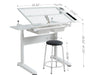 38.18" Hand Crank Adjustable Drafting Table Drawing Desk With 2 Metal Drawers With Stool - White38.18"W x 23.6"D - 69.0 lb