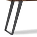 • Modern, industrial design includes discreet hand pulls on drawers and solid metal angled legs for reliable support