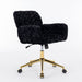 Office Chair, Artificial Rabbit Hair Home Office Chair With Golden Metal Base, Adjustable Desk Chair Swivel Office Chair, Vanity Chair - Black24.0"W x 23.6"D x 35.4"H - 22.0 lb