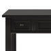- Transitional Style features shaker style drawers, Brushed Nickel knobs, square tapered legs and square edged table top