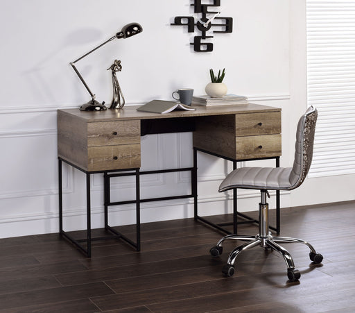 Rustic and Modern Design: This writing desk features a wooden top and drawers with a rich rustic oak finish, combining rustic charm with modern...