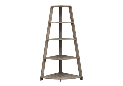 Design and Finish: This 4-tier etagere bookcase features fan-shaped shelves with a medium reclaimed wood-look finish, offering a stylish and mode...