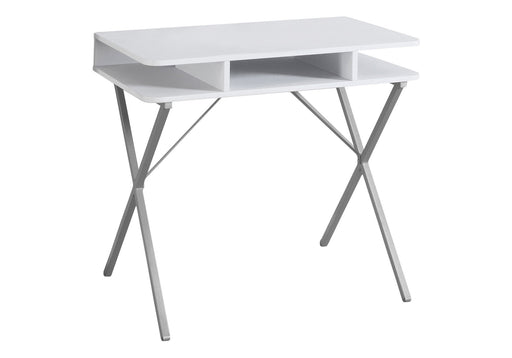 Modern Design: Upgrade your home office with a sleek, modern computer desk featuring a white laminate top and a contemporary grey metal base ...