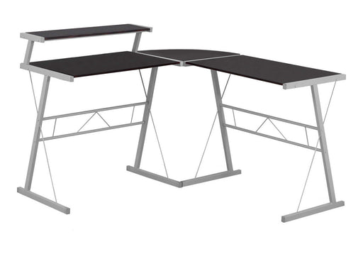 Contemporary Design: This L-shaped computer desk features a sleek, modern design with a two-tone laminate wood-look finish and a sturdy metal bas...