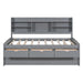 Twin Size Captain Bed With Built In Bookshelves, 3 Storage Drawers, And Trundle - Gray77.5"W x 88.0"D x 47.2"H - 163.0 lb