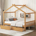 Full Size House Platform Bed With Headboard, Footboard, Roof Design And 2 Storage Drawers - Natural79.9"W x 56.1"D x 71.1"H - 94.0 lb