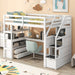 Full Size Loft Bed With Desk, Shelves, 2 Drawers, Storage Staircase - White95.1"W x 57.0"D x 65.0"H - 295.5 lb
