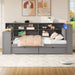 Twin Size Platform Bed With Upholstered Headboard, Storage Shelves, Drawers, Charging Station, LED Lighting, Built In Desk - Gray98.4"W x 50.1"D x 40.4"H - 178.0 lb