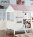 • Cottage-Inspired Design: This Full bed showcases a charming cottage-inspired design in white and pink, perfect for creating a cozy and whimsical bedroom ambiance.
