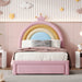 Twin Size Upholstered Rainbow Design Bed, Velvet Princess Platform Bed With Storage Drawer, No Box - Spring Needed - Colorful / Pink77.5"W x 40.5"D x 47.0"H - 57.8 lb
