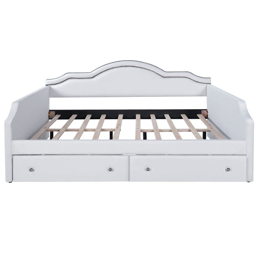 Wood Veneer Finish: Offers a durable and elegant surface with a natural wood appearance Two Storage Drawers: Built-in drawers in the footboard pro...