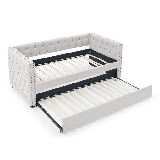 Stunning Look: This mid-century-inspired daybed features button-tufted armrests and nailhead trimming for an elegant touch. Functional Trundle: Of...