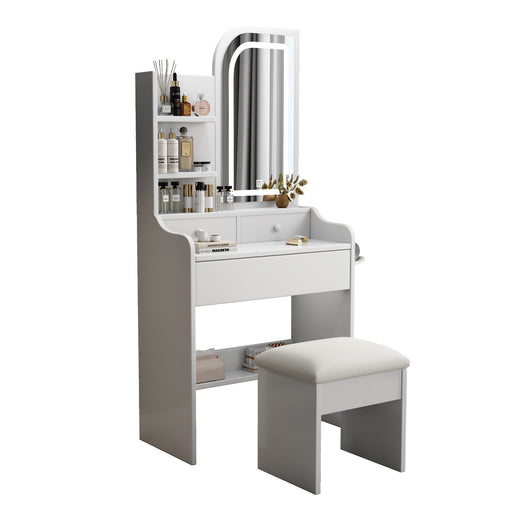 3 in 1 Design: Combines vanity, nightstand, and chair into one compact unit, saving space. Spacious Storage: Includes a flip-top jewelry organizer...