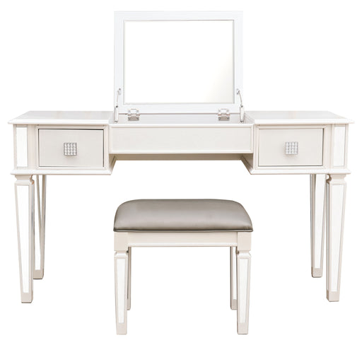 Elegant Butterfly Design: The vanity set showcases intricate butterfly motifs on its metal base and mirror trim, adding a delicate and artist...