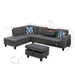 Alger - 98" Wide Left Hand Facing Sofa & Chaise With Ottoman - Dark Gray