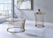 Modern Elegance: This collection features a champagne-finished coffee table and end table, designed to add a touch of modern elegance to any living space. The champagne color and sleek design elevate the aesthetic of the room.