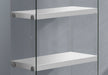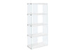 Stylish Design: This bookshelf features 4 fixed display shelves in glossy white with chic tempered glass sides, creating an inviting and spacious look for any room.