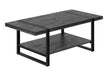 Industrial-Farmhouse Style: Rectangular coffee table featuring a rustic reclaimed wood-look finish with a fixed lower shelf for extra storage.
