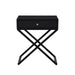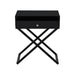 Koda - Wooden End Side Table Nightstand With Glass Top, Drawer And Metal Cross Base - Black