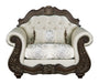 Elegant Design: The chair features intricate button-tufted detailing along with a floral-trimmed apron and legs, merging classic charm with a sophisticated aesthetic that elevates any room's decor.